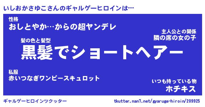 | 肩書あだ名 | 『いしおかさゆこ御曹司』 |