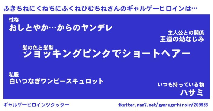 | 女子向けラノベタイトル風あだ名 | 『(仮)ふきちねにくねちにふくねひむちねのやんごとなき事情』 |