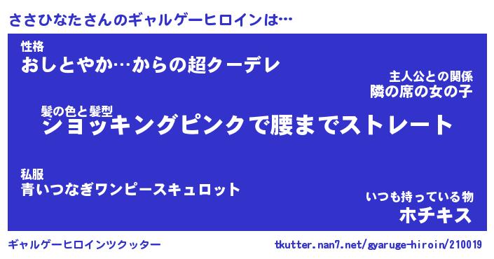 | 男性向けラノベタイトル風あだ名 | 『ささひなたの憂鬱』 |