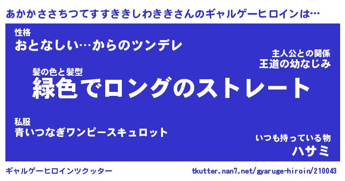 | 男性向けラノベタイトル風あだ名 | 『アカカササチツテススキキシワキキアートオンライン』 |