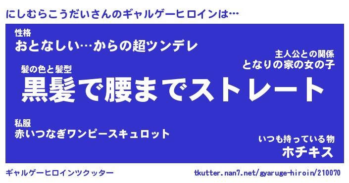 | 肩書あだ名 | 『にしむらこうだい社長令嬢』 |
