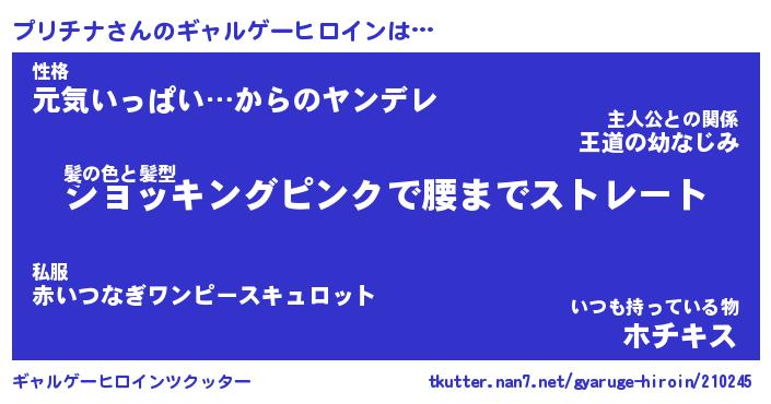 | 男性向けラノベタイトル風あだ名 | 『プリチナの憂鬱』 |