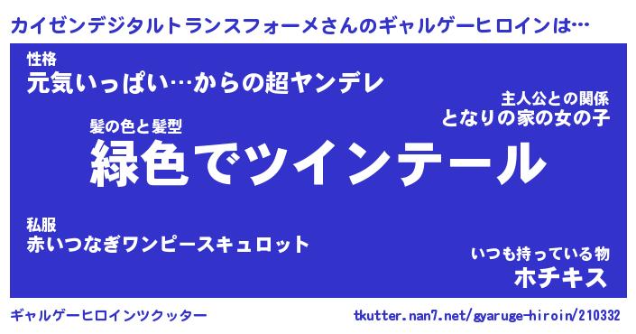 | 伝説のあだ名 | 『封印されし竜騎士カイゼンデジタルトランスフォーメ』 |
