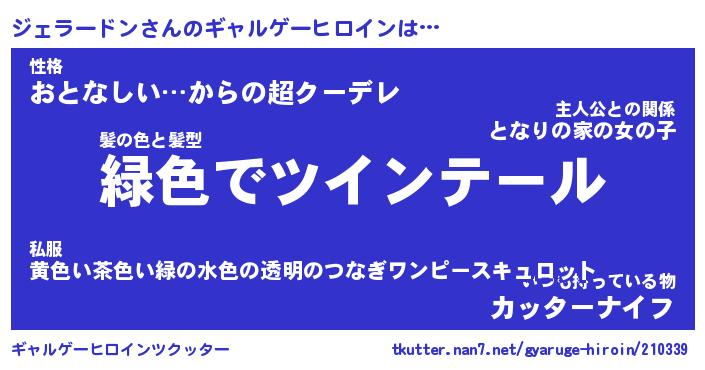 | 男性向けラノベタイトル風あだ名 | 『ジェラードンアートオンライン』 |
