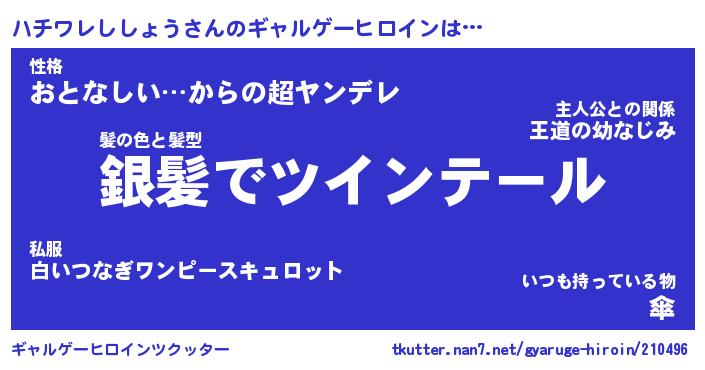 | 男性向けラノベタイトル風あだ名 | 『ハチワレししょうの憂鬱』 |