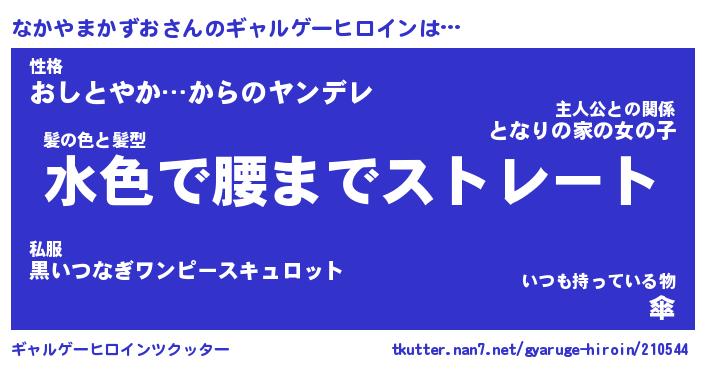 | 女子向けラノベタイトル風あだ名 | 『(仮)なかやまかずおのやんごとなき事情』 |