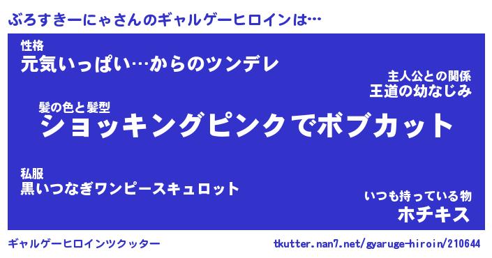 | 男性向けラノベタイトル風あだ名 | 『ぶろすきーにゃの憂鬱』 |