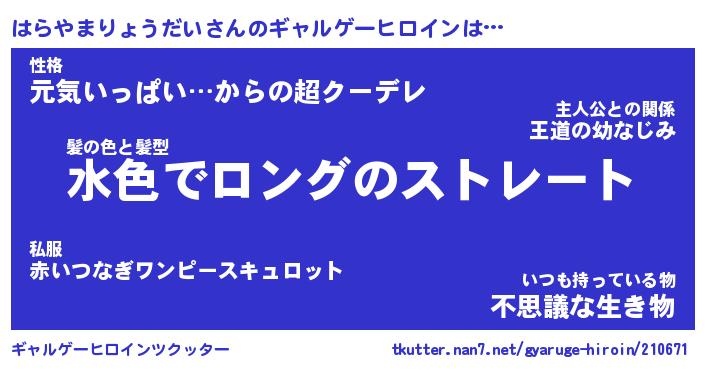 | 胡散臭い通販商品みたいなあだ名 | 『必ず成功するブレスレット…その名も「はらやまりょうだい」』 |