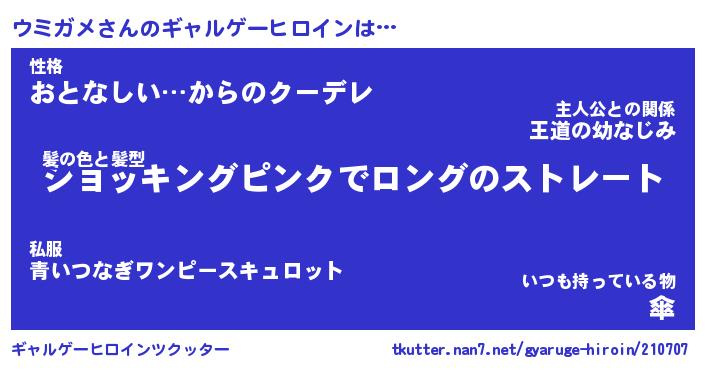 | ファンタジー風あだ名 | 『ウミフェル』『エターナルウミガメー』 |
