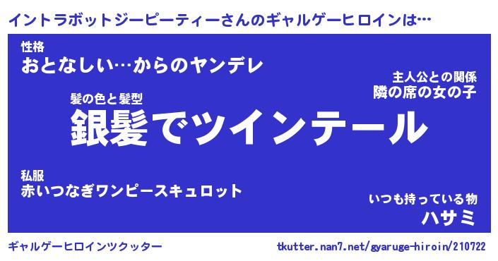 | ヒーロー風カッコイイあだ名 | 『スーパーイントラボットジーピーティー』 |