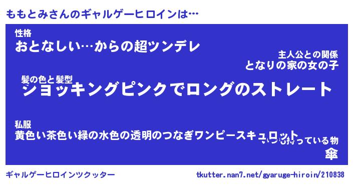 | 女子向けラノベタイトル風あだ名 | 『(仮)ももとみのやんごとなき事情』 |