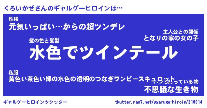 | 男性向けラノベタイトル風あだ名 | 『くろいかぜの憂鬱』 |