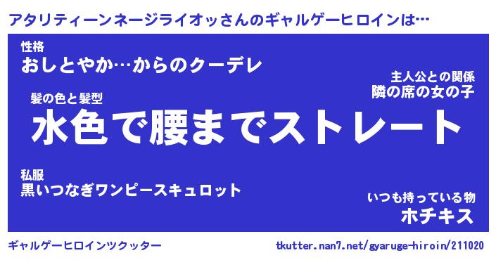 | 男性向けラノベタイトル風あだ名 | 『アタリティーンネージライオッの憂鬱』 |
