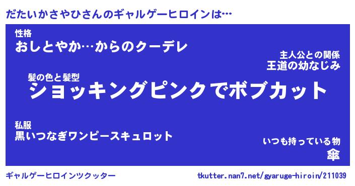 | 男性向けラノベタイトル風あだ名 | 『だたいかさやひの憂鬱』 |