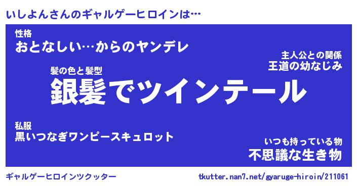 | ファンタジー風あだ名 | 『イシフェル』『エターナルイシヨンー』 |