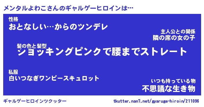 | 女子向けラノベタイトル風あだ名 | 『(仮)メンタルよわこのやんごとなき事情』 |
