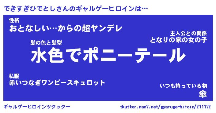 | 女子向けラノベタイトル風あだ名 | 『(仮)できすぎひでとしのやんごとなき事情』 |