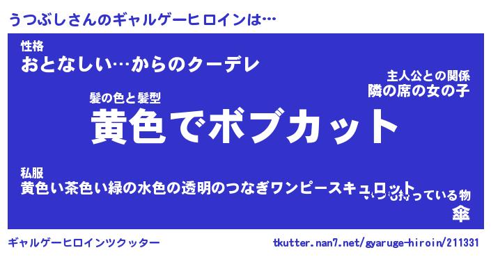 | ファンタジー風あだ名 | 『ウツフェル』『エターナルウツブシー』 |