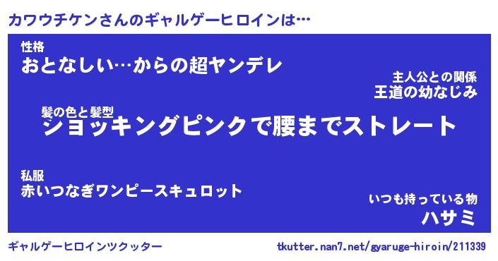 | 女子向けラノベタイトル風あだ名 | 『(仮)カワウチケンのやんごとなき事情』 |