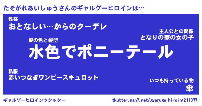 | ヒーロー風カッコイイあだ名 | 『スーパータソガレアイシュウ』 |