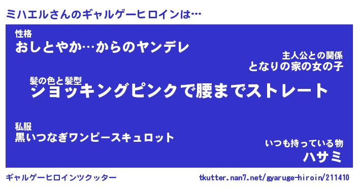| 意味不明あだ名 | 『ペロリンミハエル』『永久保存ミハエル』 |