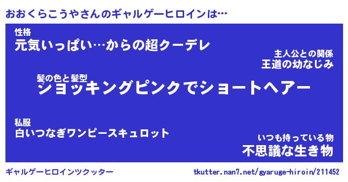 | 女子向けラノベタイトル風あだ名 | 『(仮)おおくらこうやのやんごとなき事情』 |