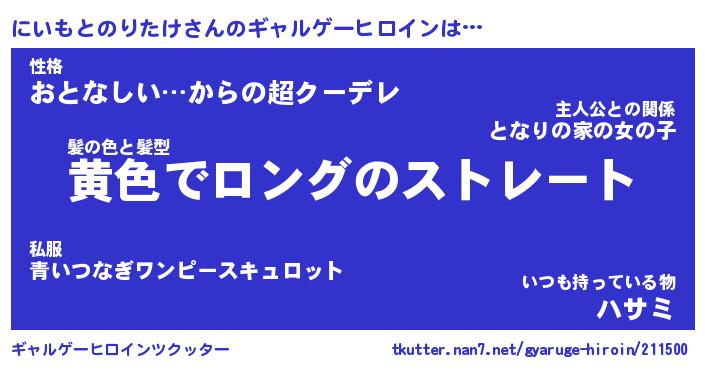 | 女子向けラノベタイトル風あだ名 | 『誰かこのにいもとのりたけを説明してください! ~契約から始まるウェディング~』 |