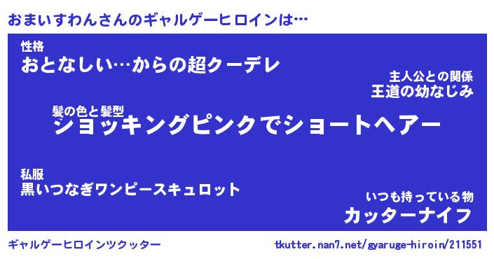 | 女子向けラノベタイトル風あだ名 | 『(仮)おまいすわんのやんごとなき事情』 |