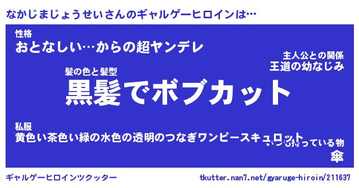 | 女子向けラノベタイトル風あだ名 | 『なかじまじょうせい姫と円卓の騎士』 |