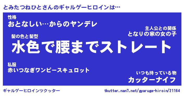 | 男性向けラノベタイトル風あだ名 | 『とみたつねひとの憂鬱』 |