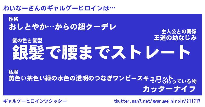 | 女子向けラノベタイトル風あだ名 | 『わいなー姫と円卓の騎士』 |