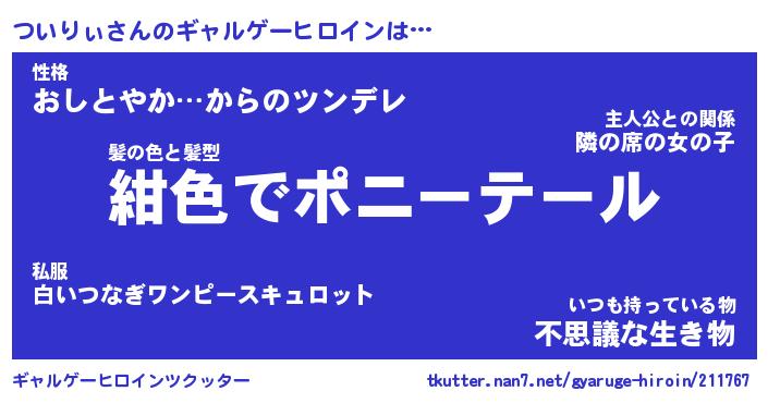| ファンタジー風あだ名 | 『ツイフェル』『エターナルツイリィー』 |