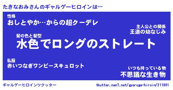 | ポケモン風あだ名 | 『タキチュウ』『タキナダネ』 |