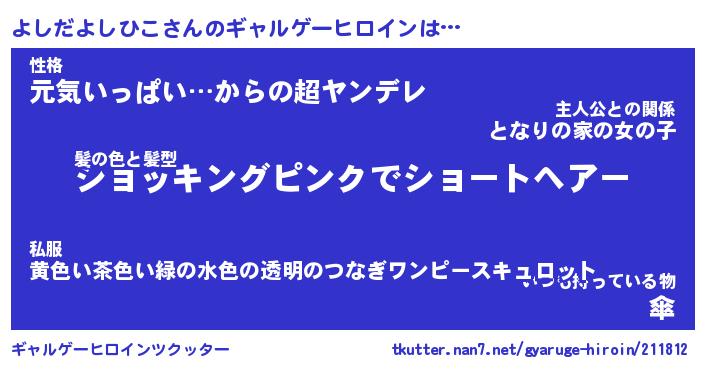 | ポケモン風あだ名 | 『ヨシチュウ』『ヨシダダネ』 |