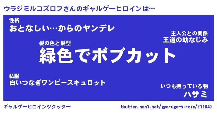 | 男性向けラノベタイトル風あだ名 | 『ウラジミルコズロフアートオンライン』 |