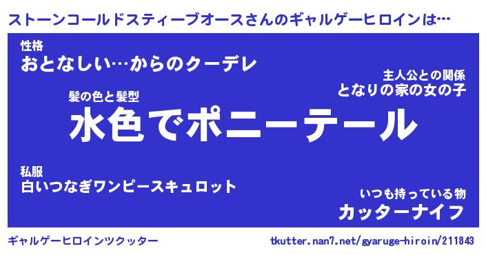 | 男性向けラノベタイトル風あだ名 | 『ストーンコールドスティーブオースの憂鬱』 |