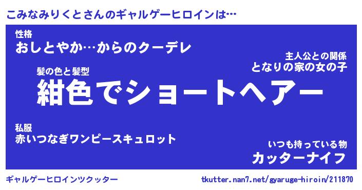 | 伝説のあだ名 | 『封印されしスナイパーこみなみりくと』 |