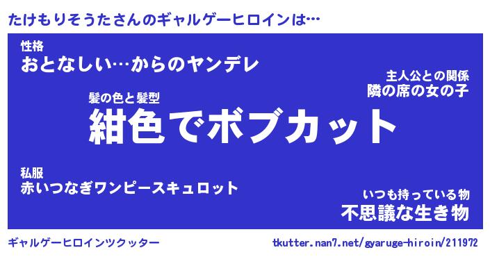 | 肩書あだ名 | 『たけもりそうた御曹司』 |
