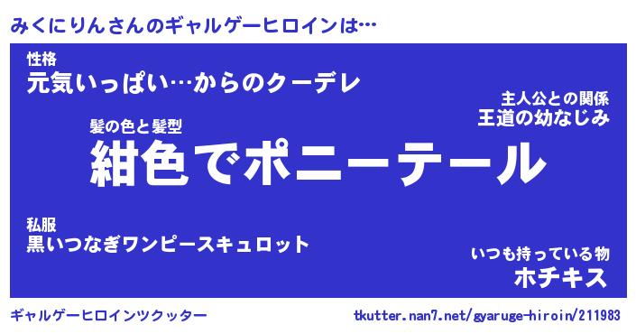 | ヒーロー風カッコイイあだ名 | 『スーパーミクニリン』『銀牙騎士ミク』 |