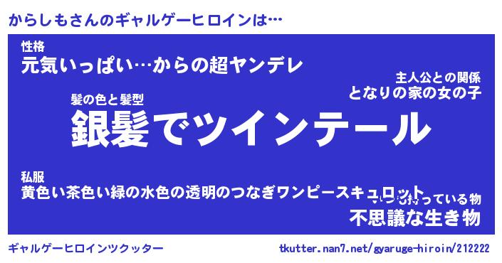 | 意味不明あだ名 | 『ペロリンからしも』『永久保存からしも』 |