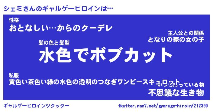 | 男性向けラノベタイトル風あだ名 | 『シェミの憂鬱』 |