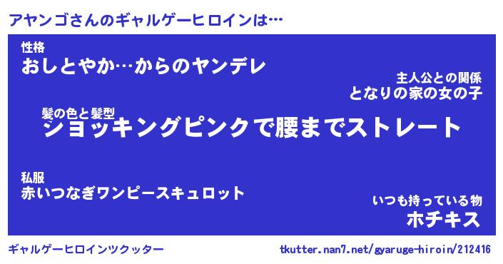 | 意味不明あだ名 | 『ペロリンアヤンゴ』『永久保存アヤンゴ』 |