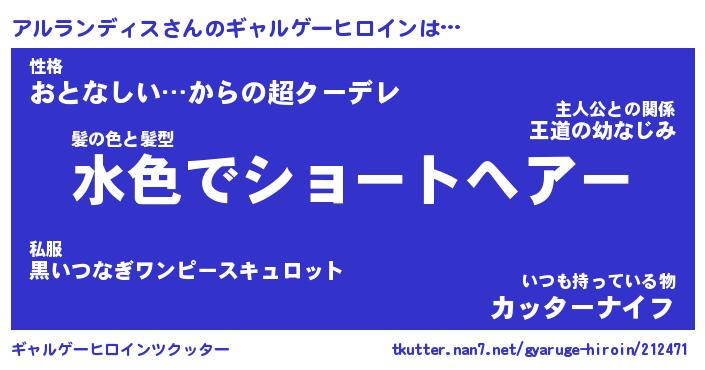 | ツイッター | アルランディスさんのツイッターID『kikurage_man』 |