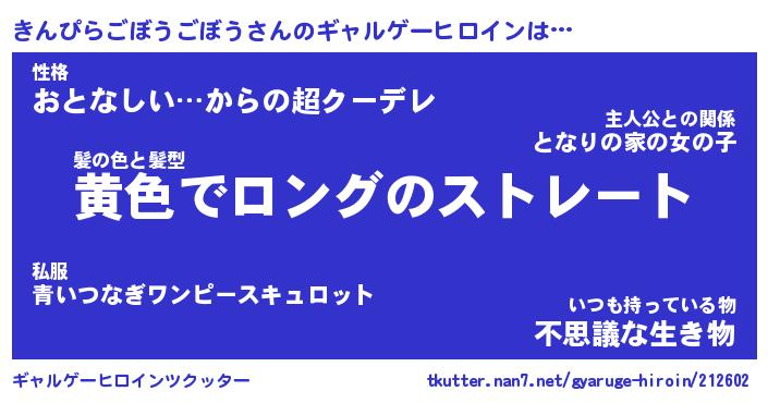 | 男性向けラノベタイトル風あだ名 | 『キンピラゴボウゴボウアートオンライン』 |