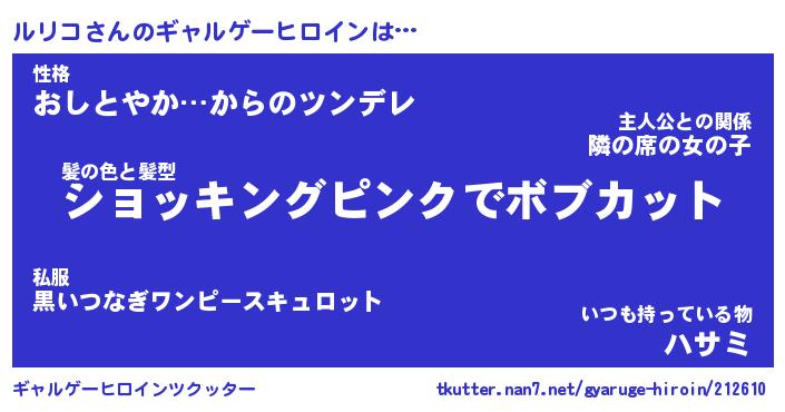 | 男性向けラノベタイトル風あだ名 | 『ルリコの憂鬱』 |
