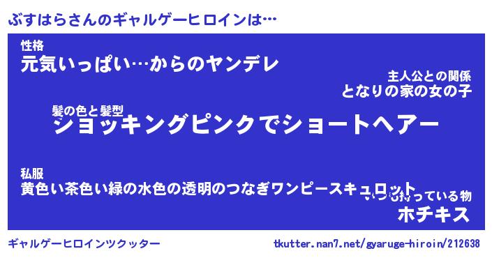 | 女子向けラノベタイトル風あだ名 | 『(仮)ぶすはらのやんごとなき事情』 |