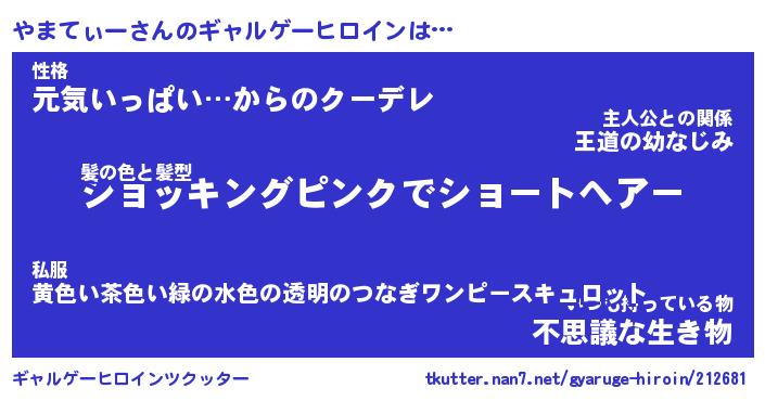| 女子向けラノベタイトル風あだ名 | 『(仮)やまてぃーのやんごとなき事情』 |