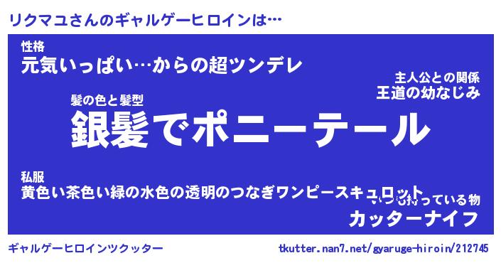 | 女子向けラノベタイトル風あだ名 | 『リクマユ姫と円卓の騎士』 |