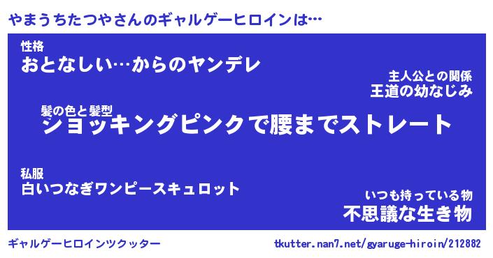| 女子向けラノベタイトル風あだ名 | 『(仮)やまうちたつやのやんごとなき事情』 |