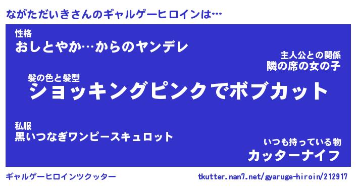 | 男性向けラノベタイトル風あだ名 | 『ながただいきの憂鬱』 |